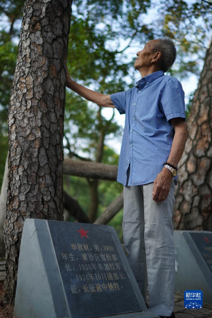 9月16日,紅軍烈士華欽材的后代華從祁來到松樹下祭拜烈士。