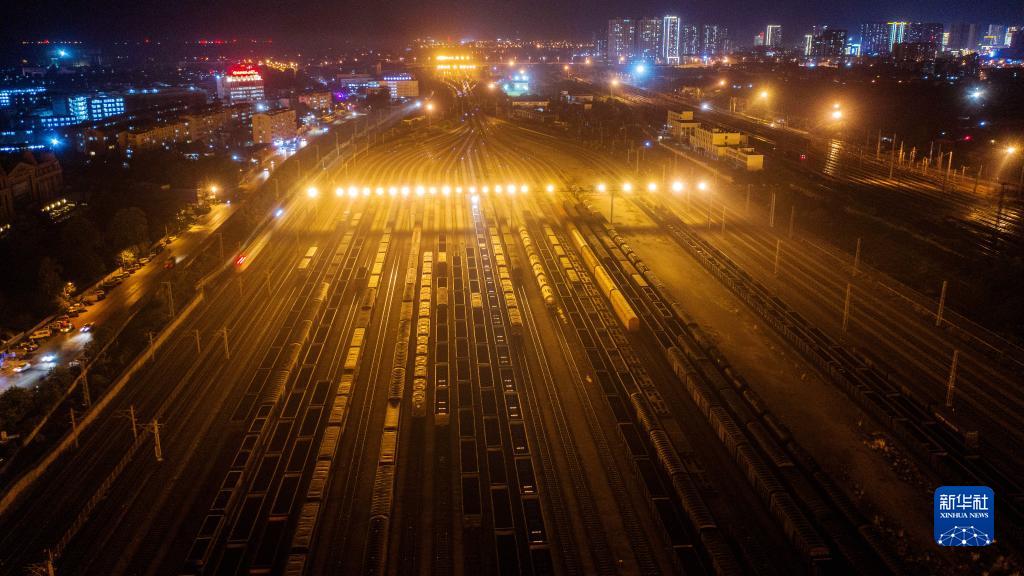 在中鐵南寧局集團有限公司柳州南編組場,貨列排隊等待調車作業(9月27日攝,無人機照片)。