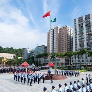 10月1日,澳門特別行政區(qū)政府在金蓮花廣場舉行升旗儀式,慶祝中華人民共和國成立73周年。新華社記者 張金加 攝