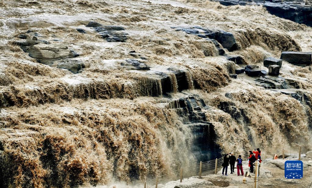 9月15日,游人在黃河壺口瀑布群前拍照、游覽。