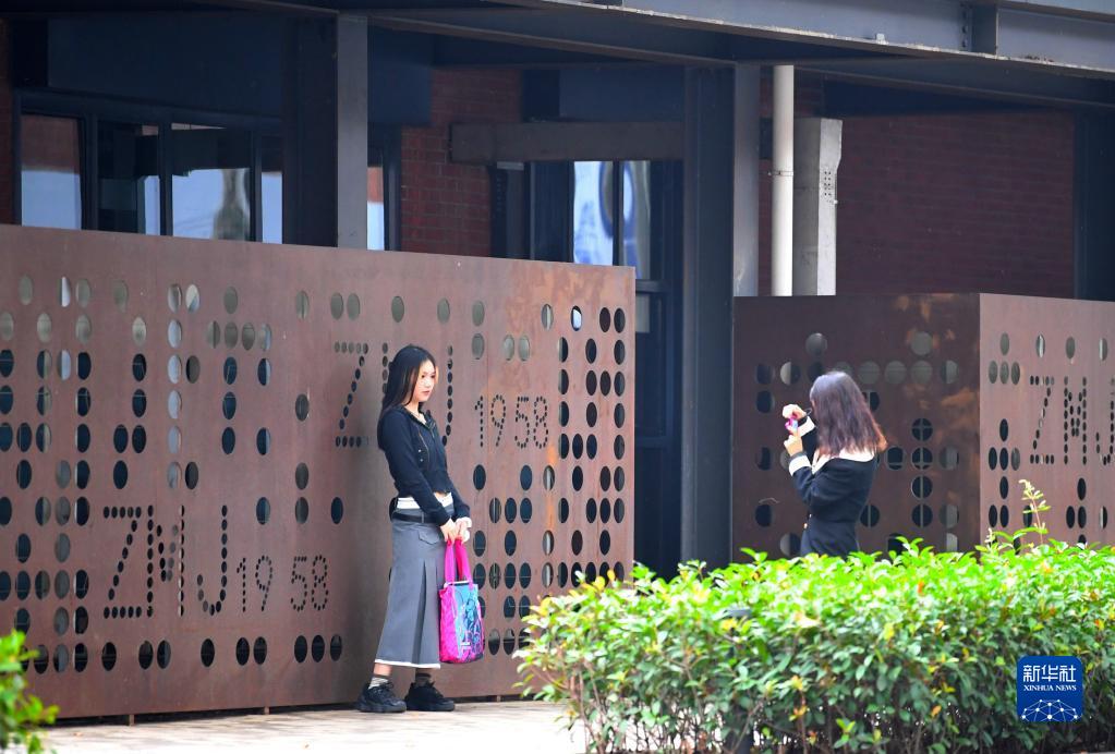 10月1日,市民在河南省鄭州市芝麻街1958雙創(chuàng)園里拍照游玩。