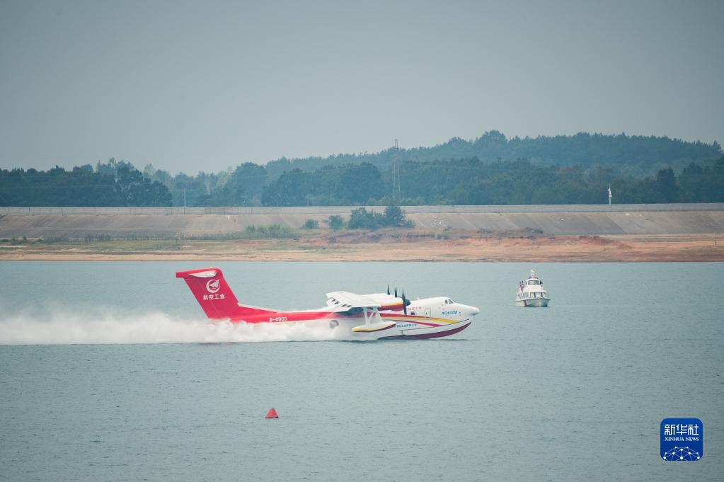 9月27日,“鯤龍”AG600M在水上滑行汲水。