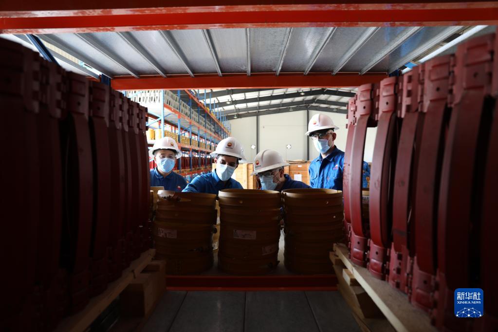 9月24日,在伊拉克米桑省,中伊雙方工作人員在哈法亞油田一處庫房里清點設備。新華社發(哈利勒·達伍德攝)