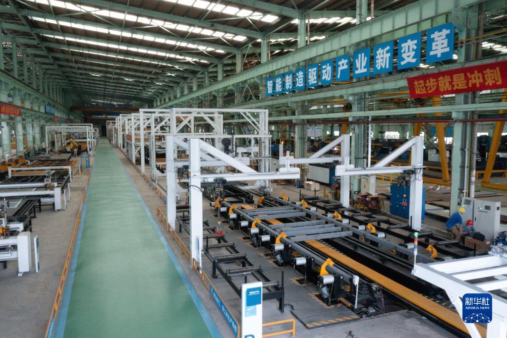 智能化鋼結(jié)構(gòu)模塊化生產(chǎn)線(2022年9月28日攝,無人機照片)。