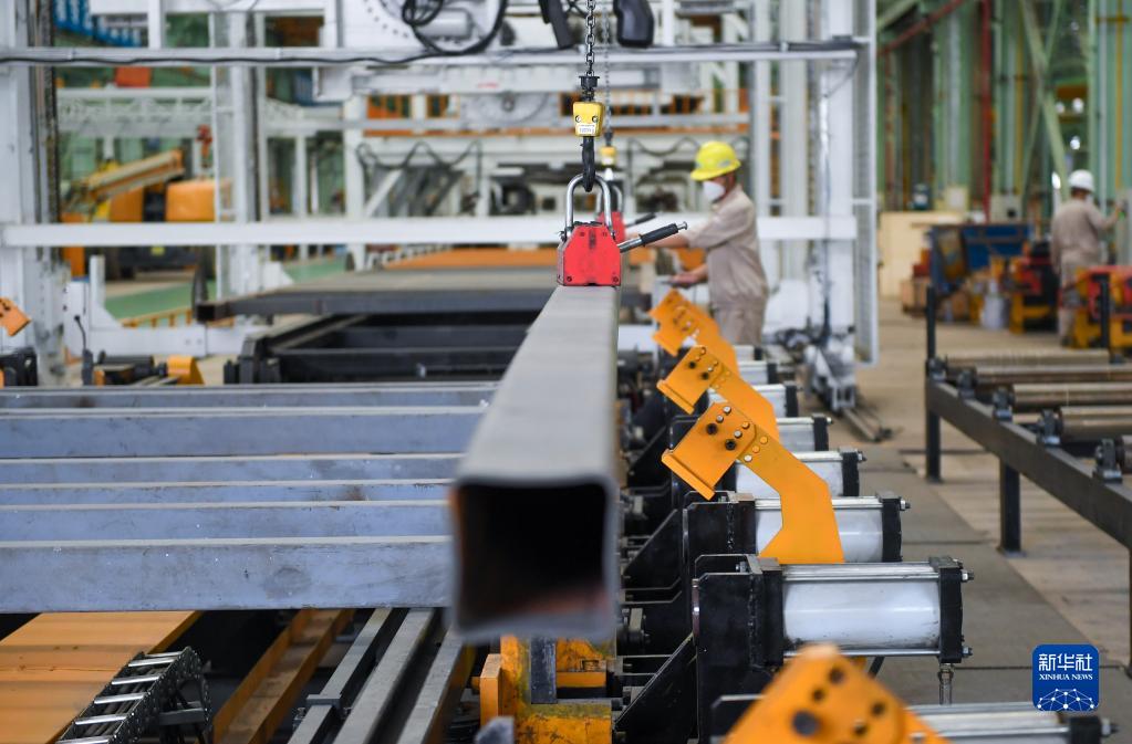智能化鋼結(jié)構(gòu)模塊化生產(chǎn)線(2022年9月28日攝)。
