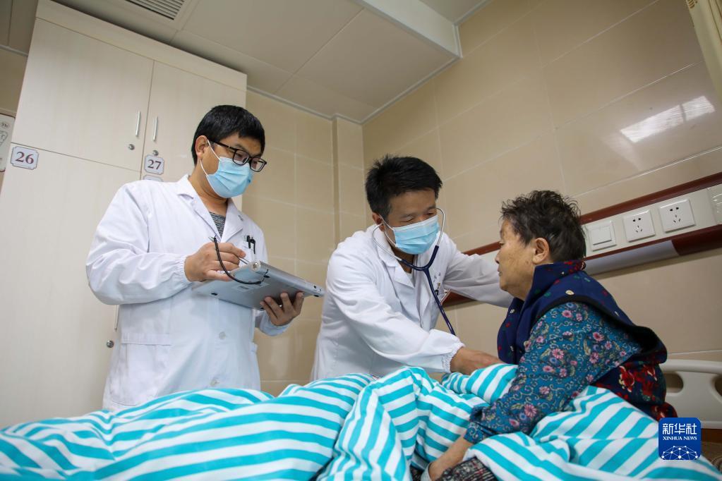 10月2日,安徽省明光市中醫院醫生在病房查房。