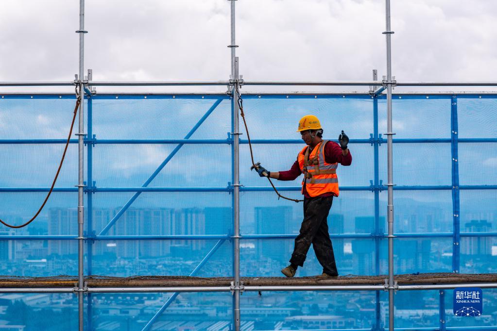 10月2日,中建七局西南公司工人李忠文在昆明斗南花卉小鎮(zhèn)花卉產(chǎn)業(yè)綜合配套服務(wù)區(qū)項(xiàng)目建設(shè)工地施工。