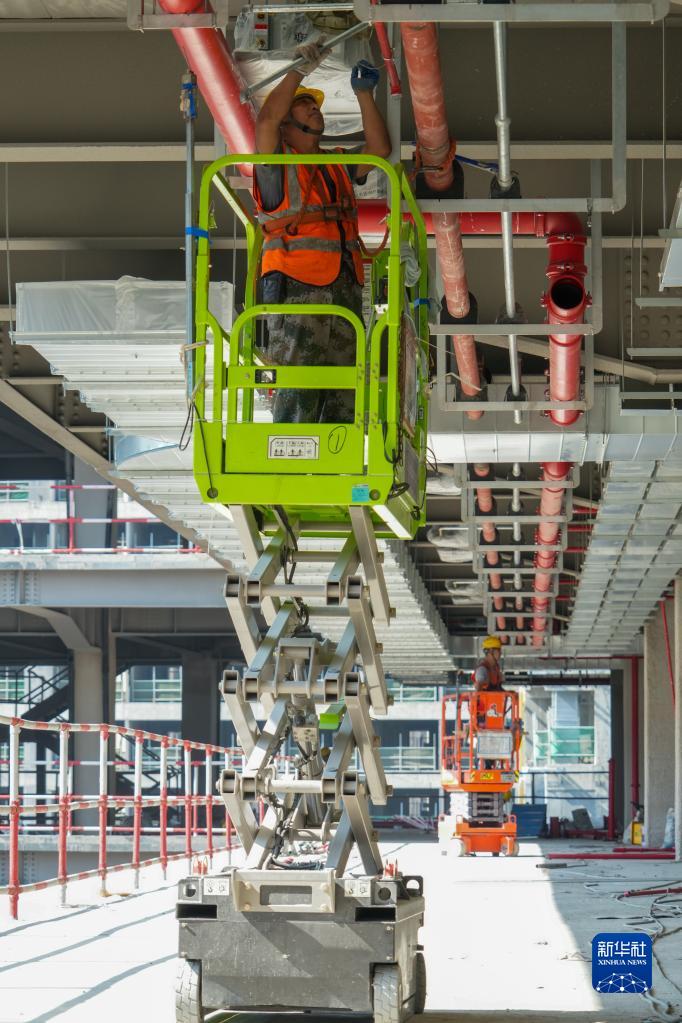 10月2日,中建三局一公司的施工人員在南京市建鄴區小米集團華東總部項目施工現場作業。