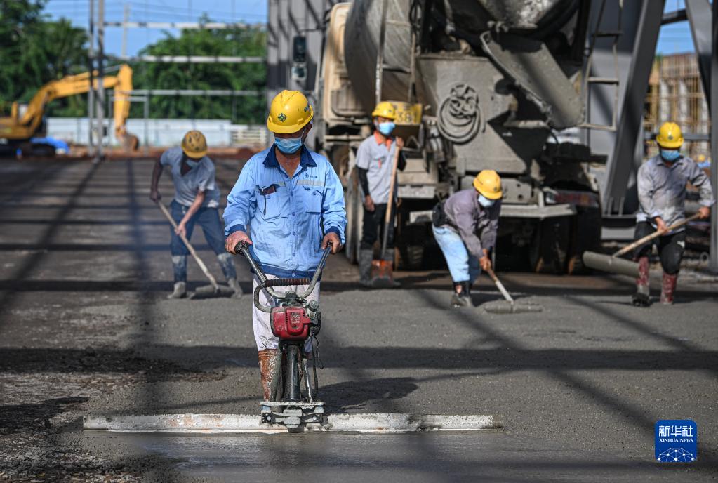 10月2日,在位于海南洋浦經濟開發區的申能電氣風電新能源裝備產業項目工地,工人在施工作業。