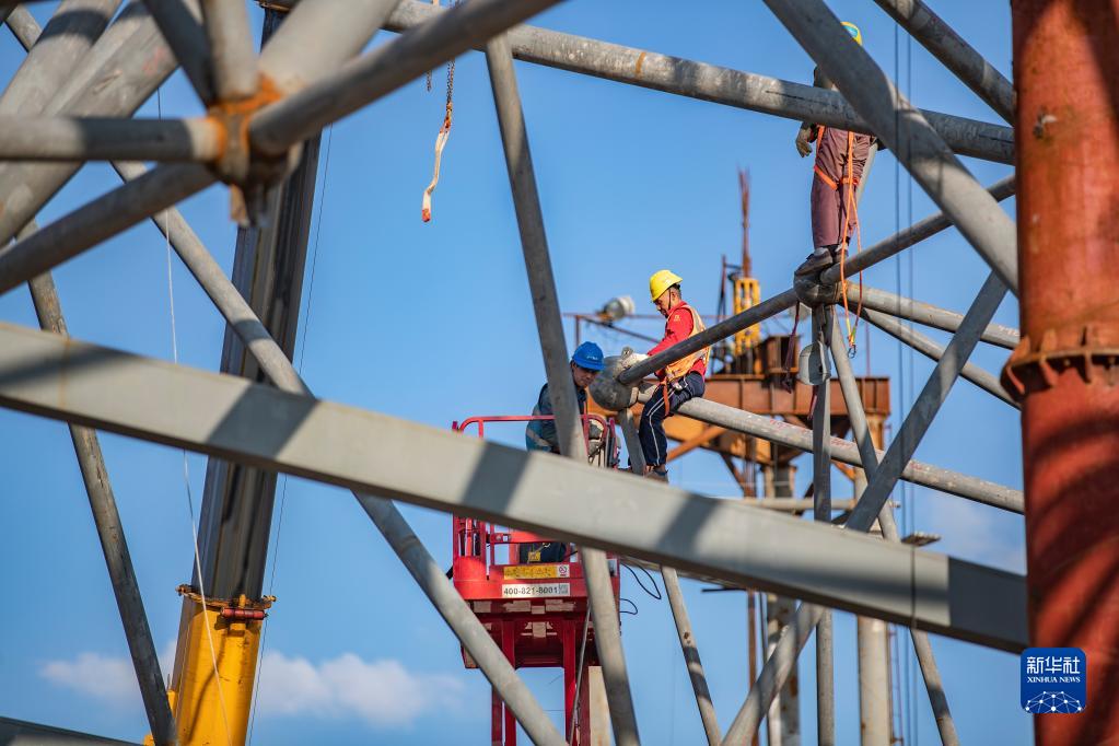 10月1日,在中建八局承建的重慶江北國(guó)際機(jī)場(chǎng)T3B航站樓施工現(xiàn)場(chǎng),工作人員在進(jìn)行鋼結(jié)構(gòu)施工作業(yè)。