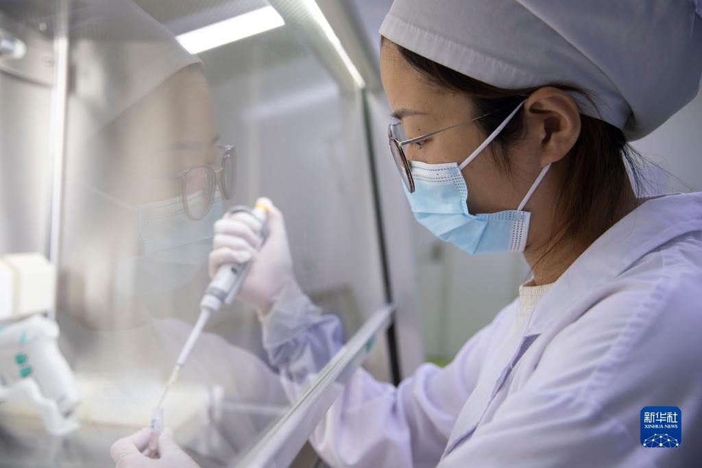 2022年6月20日,在位于中國(黑龍江)自由貿易試驗區哈爾濱片區的黑龍江天晴干細胞股份有限公司檢驗室內,工作人員對樣品進行檢驗。