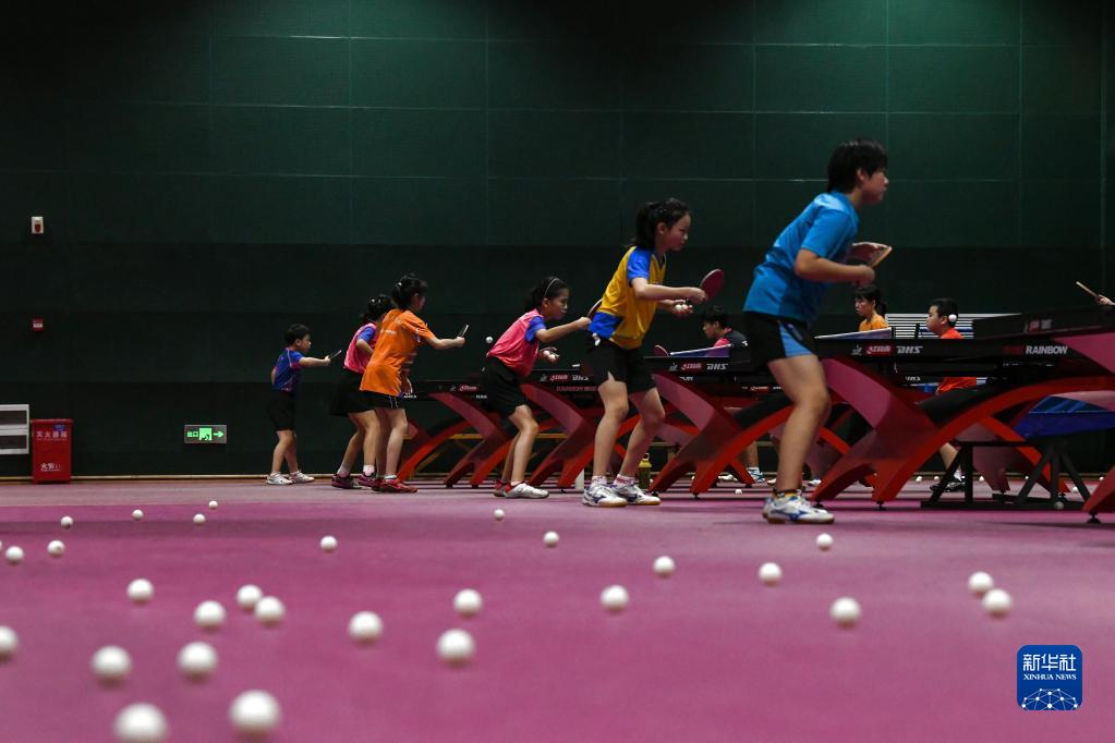 學員在成都市全國重點乒乓球運動學校訓練(9月29日攝)。