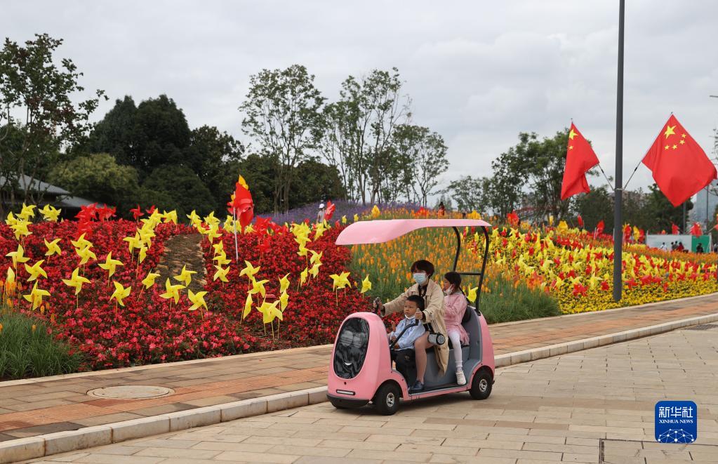 10月2日,游客在云南省昆明市世博園游玩。