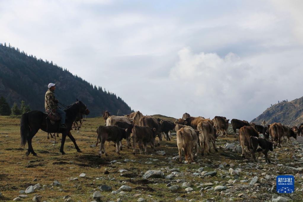 新疆昭蘇:褐牛轉場出天山