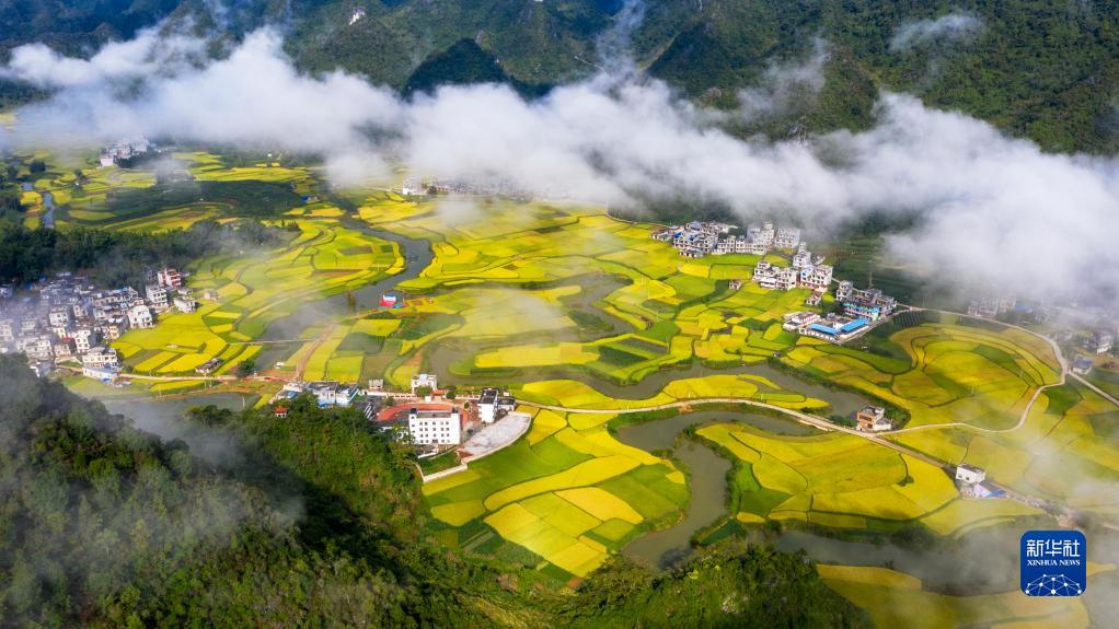 10月3日拍攝的廣西靖西市祿峒鎮平江村田園景色(無人機照片)。