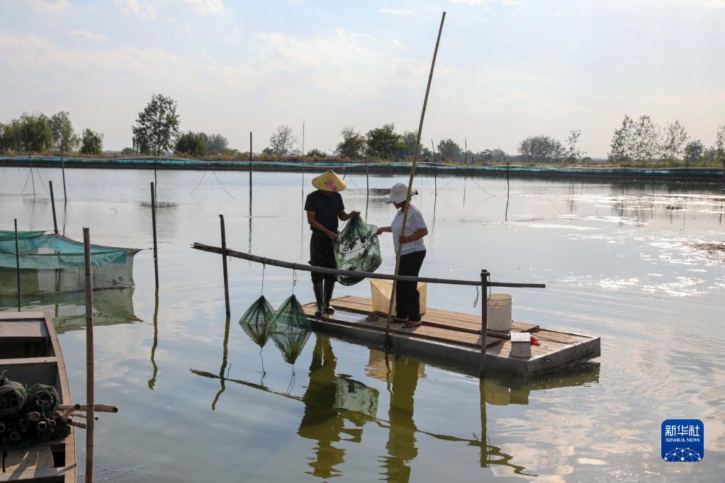 10月3日,安徽省明光市女山湖鎮漁民在進行捕撈作業。
