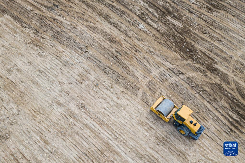 10月3日,工程機(jī)械在位于海南洋浦經(jīng)濟(jì)開發(fā)區(qū)的洋浦海上風(fēng)電產(chǎn)業(yè)園項(xiàng)目工地施工(無人機(jī)照片)。