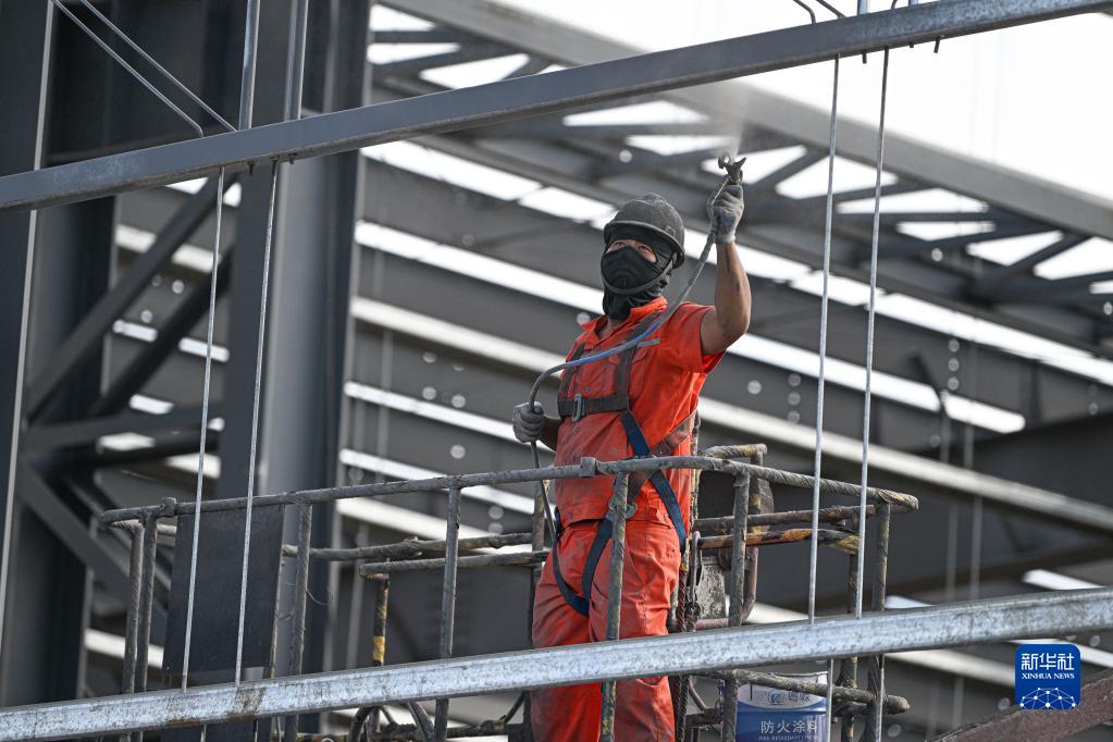 10月2日,工人在位于海南洋浦經濟開發區的申能電氣風電新能源裝備產業項目工地施工。