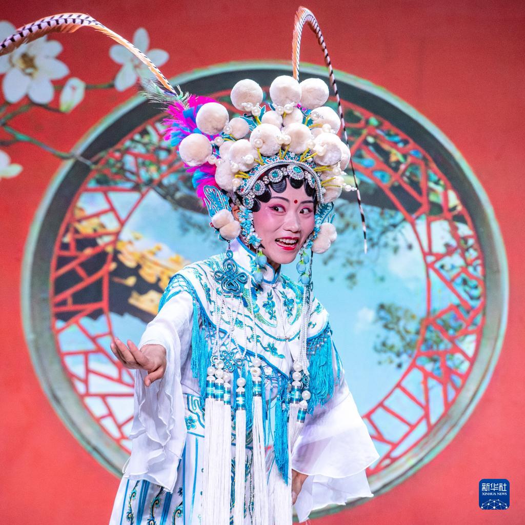 10月2日,在千年古鎮(zhèn)磁器口后街的“戲韻國潮館”內,演員在臺上表演川劇。