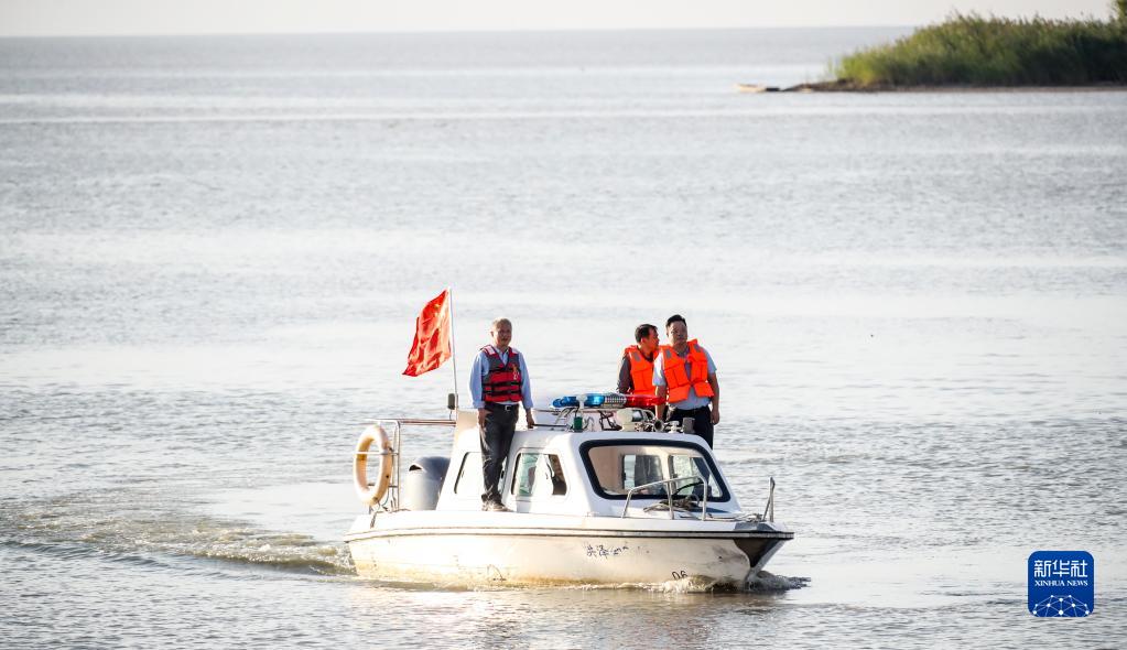 9月26日,洪澤湖河湖管理所工作人員在湖上巡邏。