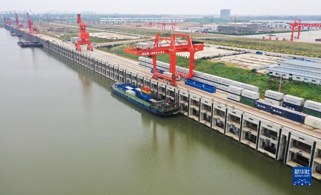 這是9月27日在河南省信陽市淮濱縣拍攝的淮濱中心港(無人機照片)。