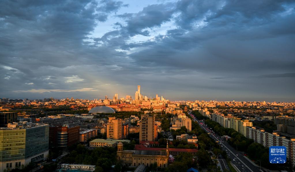 10月3日,夕陽照亮北京CBD的高樓建筑群。據天氣預報顯示,北京當天冷空氣影響逐漸顯現,陣風可達七級左右,夜間最低氣溫預計將降至8℃。
