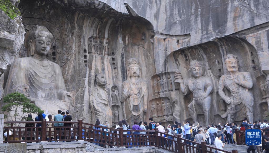 10月3日,游客在河南洛陽龍門石窟景區內游覽。
