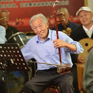 10月2日,80歲的劉名飛(中)在河北省石家莊市欒城區農民工俱樂部排練。劉名飛參加農民工俱樂部已有11年,義務為鄉親們表演。