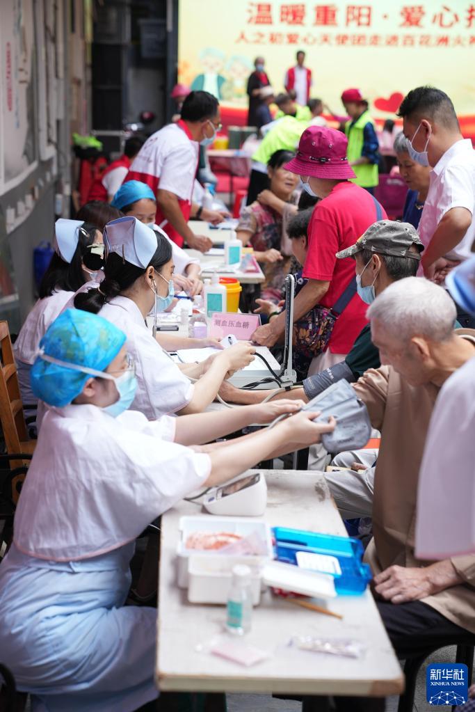 在南昌市東湖區(qū)火神廟社區(qū),“時間銀行”志愿團(tuán)隊組織社區(qū)的老年人開展義診(9月29日攝)。