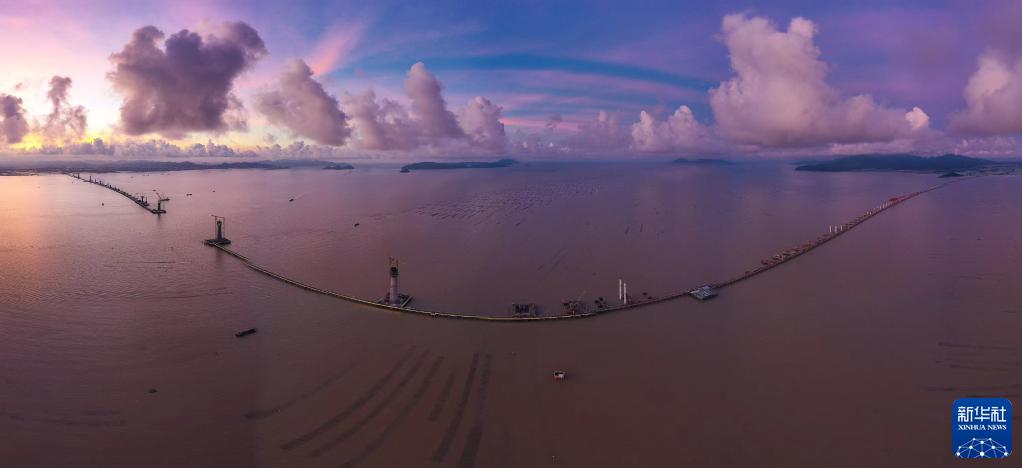 中鐵大橋局和中交路建承建的黃茅海跨海通道(2022年6月28日攝,無(wú)人機(jī)照片)。黃茅海跨海通道東起珠海市平沙鎮(zhèn),西接江門(mén)市斗山鎮(zhèn),橫跨珠江口崖門(mén)入海口黃茅海水域,線路全長(zhǎng)約31公里,預(yù)計(jì)2024年建成通車(chē)。