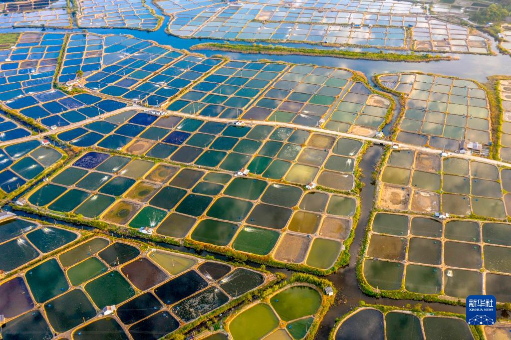 這是10月4日在浙江省寧波市鄞州區咸祥鎮拍攝的養殖塘(無人機照片)。