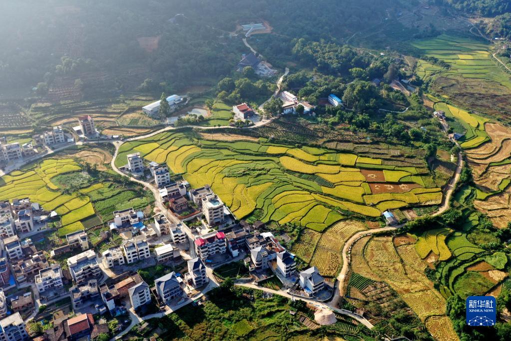 這是10月4日在福建省連江縣東湖鎮(zhèn)拍攝的田園風光(無人機照片)。