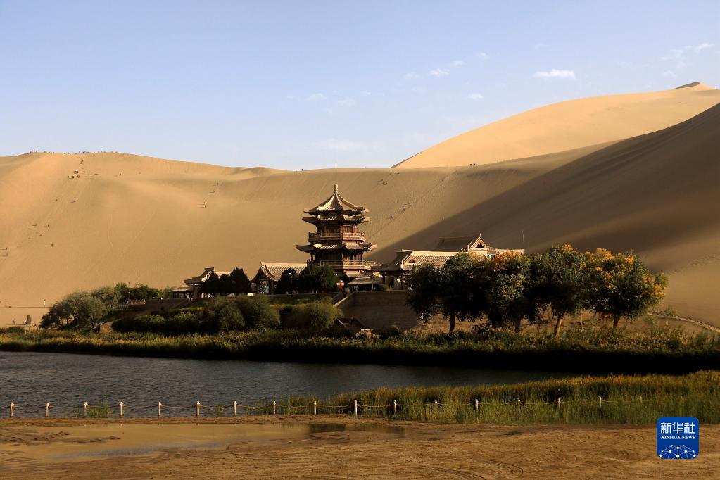 這是10月4日拍攝的甘肅省敦煌市鳴沙山月牙泉景區(qū)。