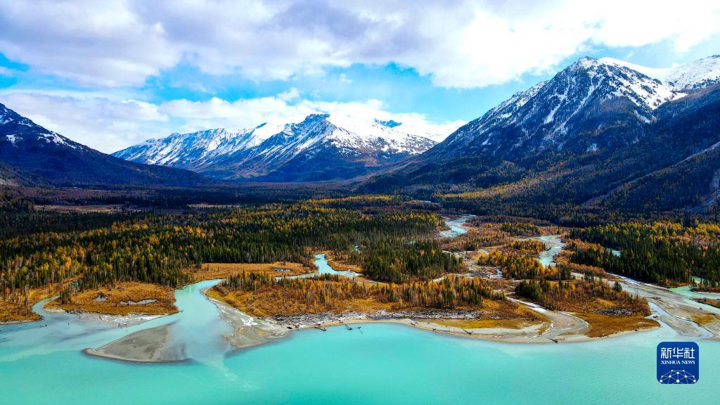 這是10月1日拍攝的新疆喀納斯景區風光(無人機照片)。