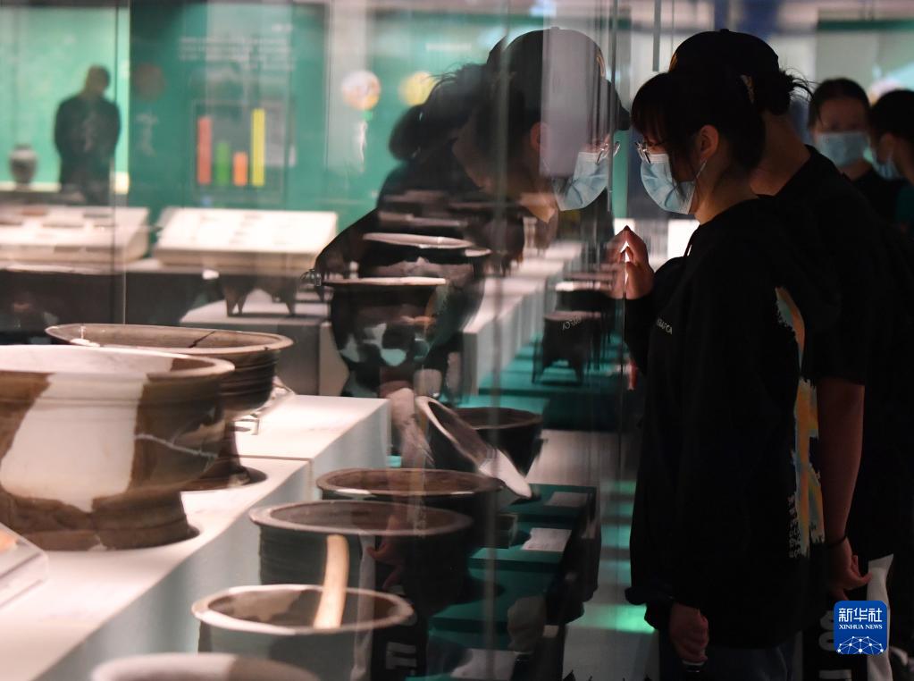 10月4日,市民在河南鄭州商都遺址博物院參觀。