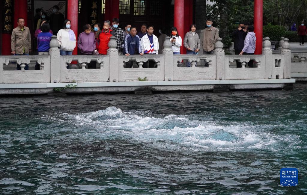 10月4日,游客在觀賞趵突泉。