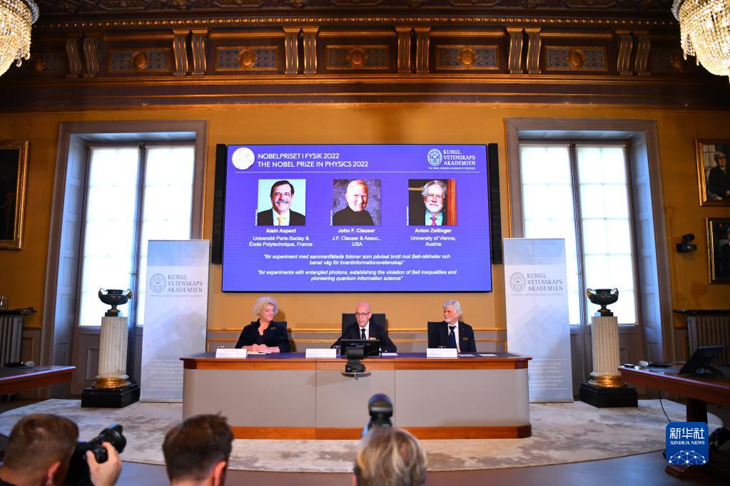瑞典皇家科學院4日宣布,將2022年諾貝爾物理學獎授予法國科學家阿蘭·阿斯佩、美國科學家約翰·克勞澤和奧地利科學家安東·蔡林格,以表彰他們在“糾纏光子實驗、驗證違反貝爾不等式和開創量子信息科學”方面所做出的貢獻。