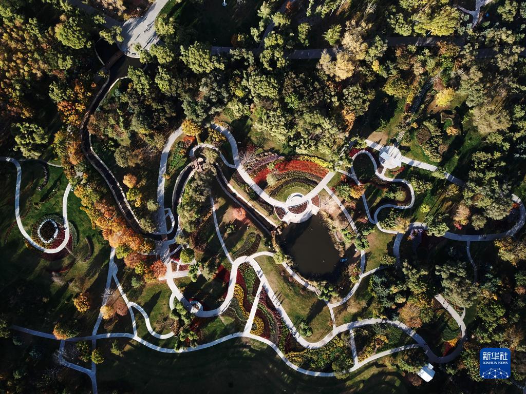 這是10月4日拍攝的太陽島風景區的花卉園(無人機照片)。