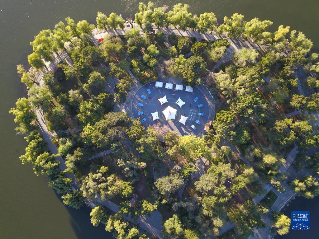 十月初的吉林長春秋意漸濃,南湖公園內湖心島與四亭橋遙相輝映,景色優美。