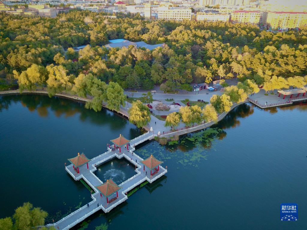 這是10月4日拍攝的吉林長春南湖公園秋景(無人機(jī)照片)。