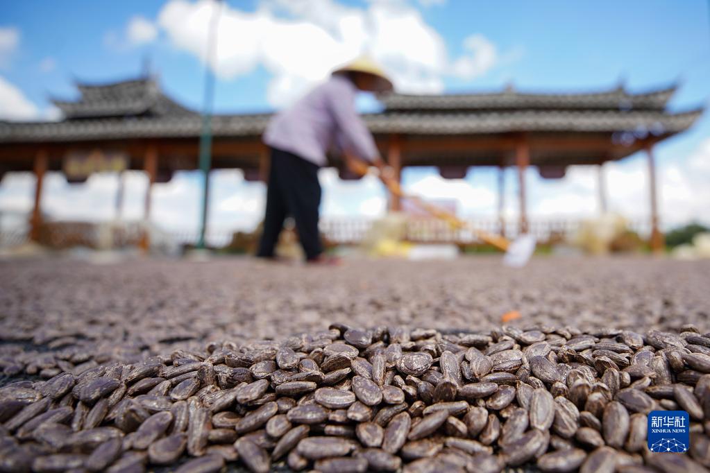 10月5日,貴州省黔東南苗族侗族自治州丹寨縣興仁鎮(zhèn)燒茶村村民在晾曬吊瓜子。