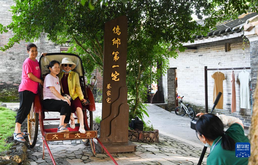 游客在海南省瓊海市博鰲鎮(zhèn)留客村的蔡家宅內(nèi)合影留念(2022年10月2日攝)。