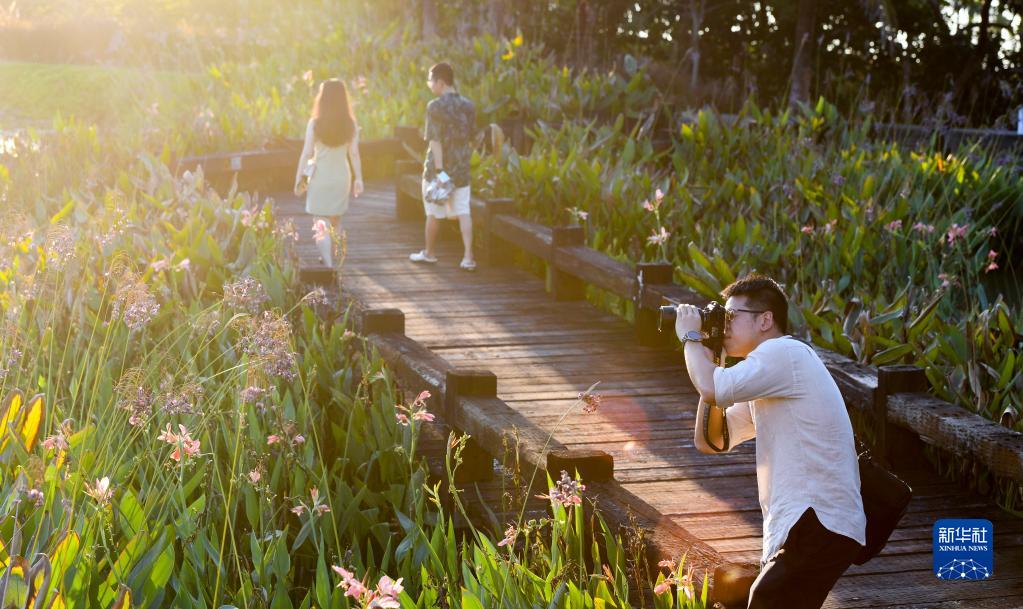 游客在海南省瓊海市博鰲鎮留客村游覽拍照(2022年10月2日攝)。