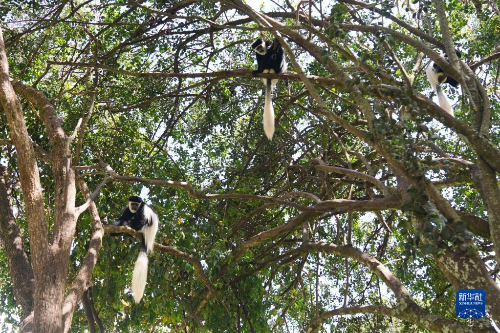 這是10月5日在肯尼亞納紐基拍攝的東非黑白疣猴。