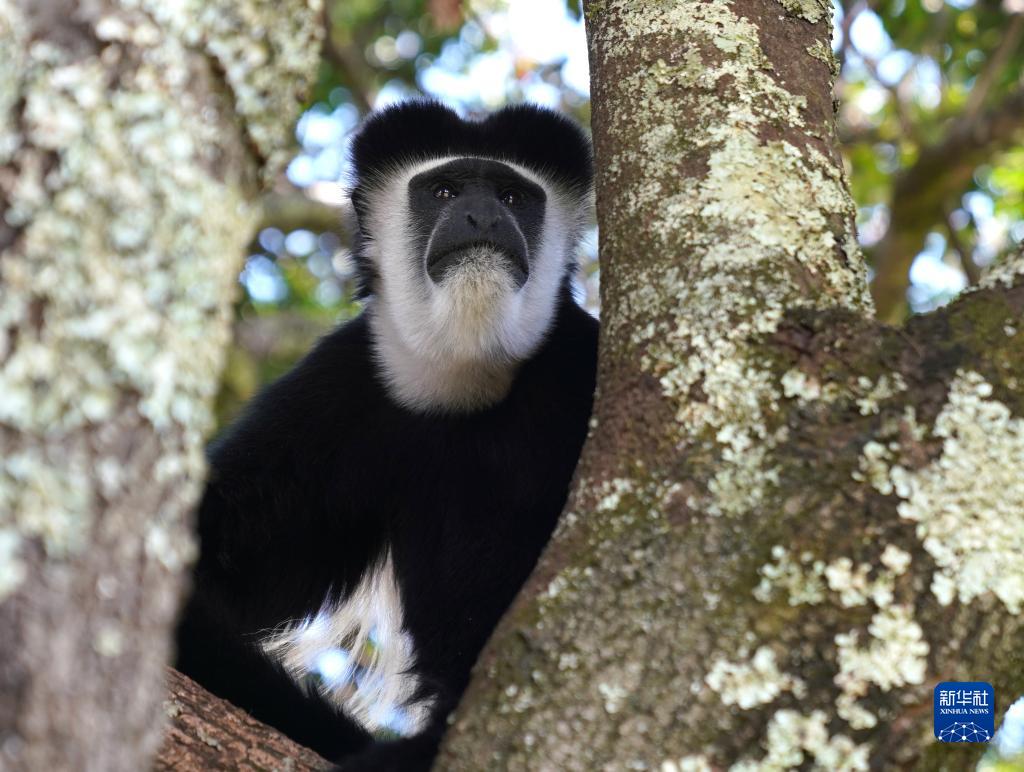 這是10月5日在肯尼亞納紐基拍攝的東非黑白疣猴。