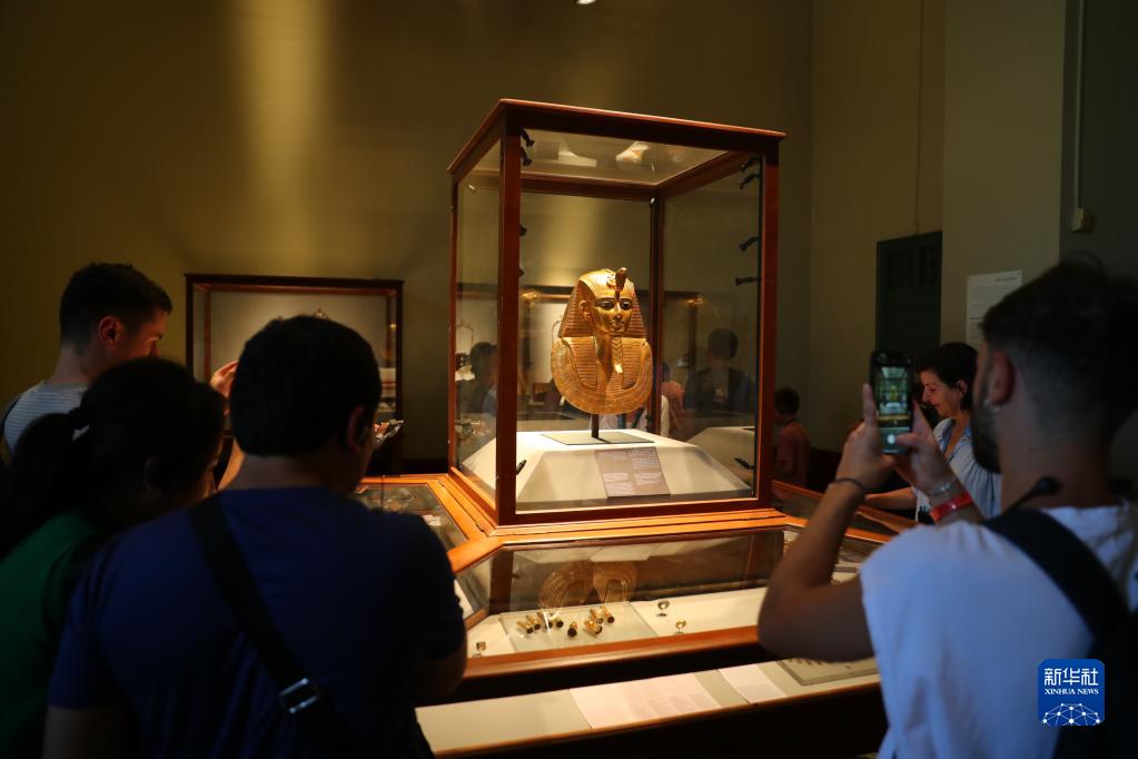 10月5日,在位于埃及開羅的埃及博物館,游客拍攝法老蘇瑟奈斯一世的金面具。