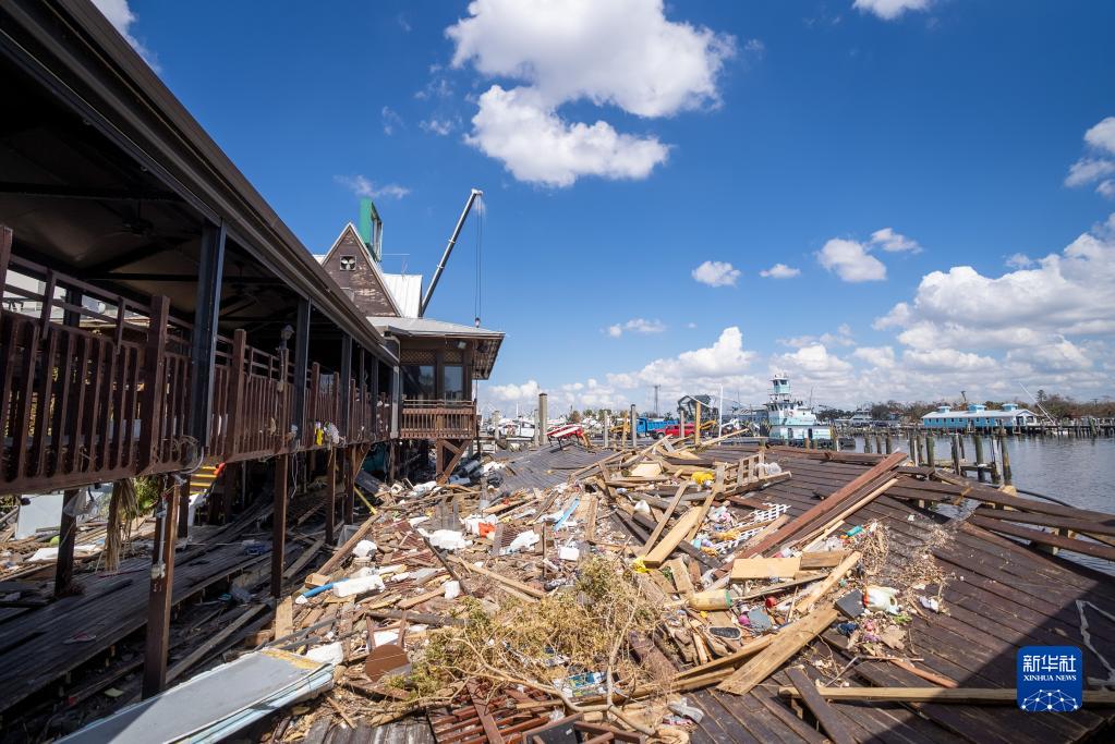 這是10月4日在美國佛羅里達州邁爾斯堡拍攝的遭颶風“伊恩”破壞的碼頭。 新華社發(羅蘭多·洛佩斯攝)