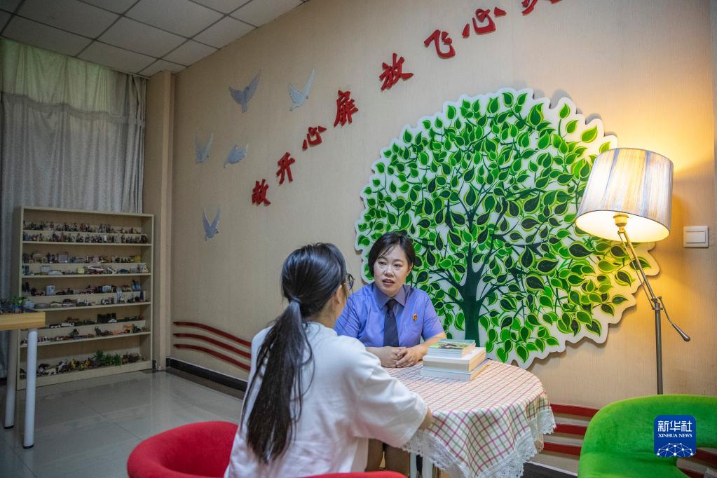 9月20日,在重慶市大渡口區(qū)人民檢察院“莎姐”談心室內(nèi),梅玫與一名前來咨詢的未成年人談心。