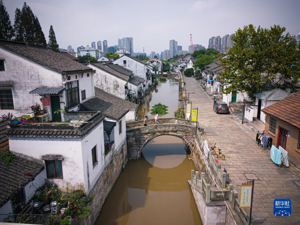 從杭州西興老街流淌而過的浙東運河(2022年9月27日攝,無人機照片)。