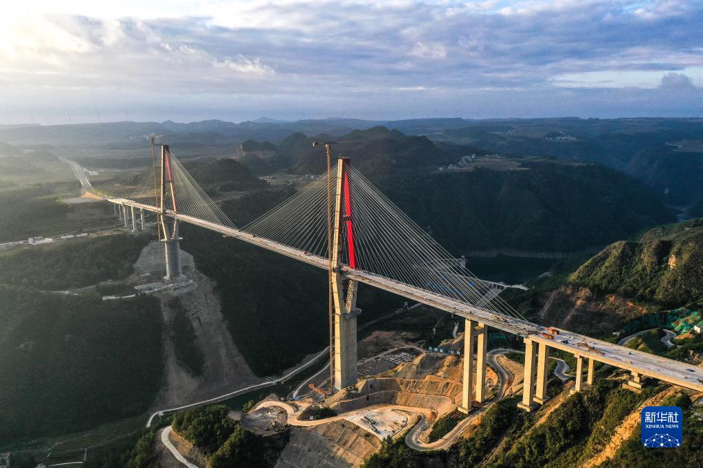 10月6日拍攝的貴州龍里河大橋施工場(chǎng)景(無(wú)人機(jī)照片)。
